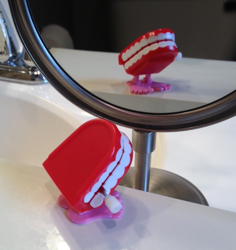 I’m not going to lie, I dream a lot about my teeth. Sometimes they’re loose when they shouldn’t be. Sometimes they fall out and I try to put them back in. Sometimes I have a big wad of gum in my mouth and it keeps sticking to my teeth so I can’t quite spit it out. Now I have a new thing to dream about: that purple cement stuck permanently in my mouth.