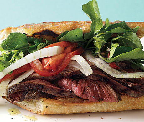 STEAK SANDWICHES WITH WATERCRESS, ONION AND TOMATO