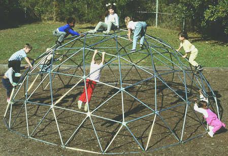 Naturally, neither pig nor duck got a lot of playtime from either Kristin or I. Usually we’d head first to the monkey bars. It’s hard to explain, but they were composed of metal bars linked together to form triangles that, as a pack, formed a dome. The triangles were an interesting choice because even with size 5 feet, pressing your sneaker into the apex of the upside-down triangle to get leverage to get to the next level of triangle was, in a word, squishy.